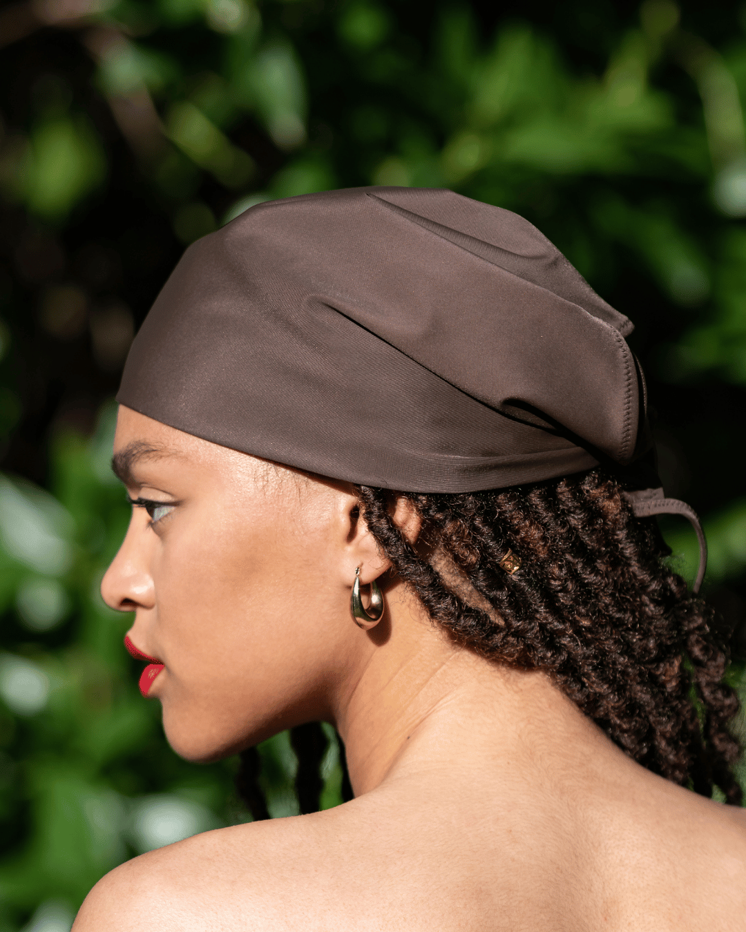 The Panama Top, featuring a diamond-shaped foulard design, can be styled as both a statement piece and a functional swim top or a turban. Crafted from our signature nylon fabric, it is secured with thin straps around the neck and back for a comfortable and adjustable fit. Chocolate Brown is a rich, earthy shade of brown.